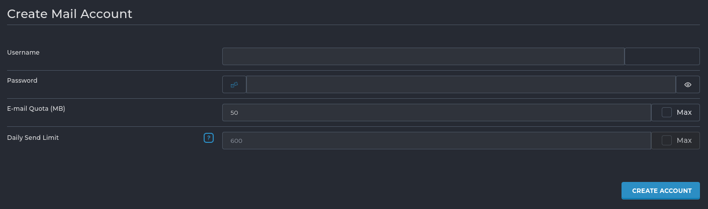 - Quota: Stel een opslaglimiet in voor het e-mailaccount (optioneel). Klik op "Create" of "Aanmaken" om het e-mailaccount te voltooien.